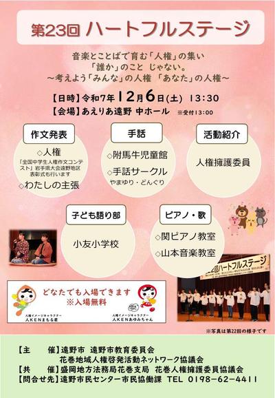 音楽とことばで育む「人権」のつどい ~ 第23回ハートフルステージの開催について ~