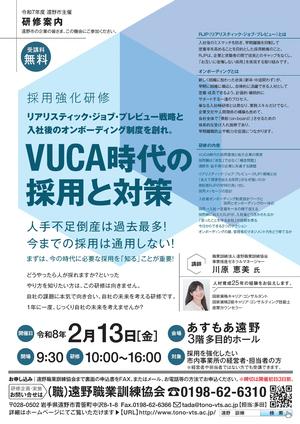 遠野市では、市内事業所を対象とした採用強化研修「VUCA※時代の採用と対策」を開催します。