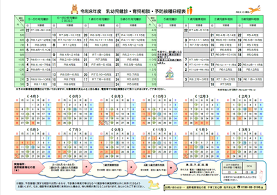 令和8年度 乳幼児健診・育児相談・予防接種日程等について