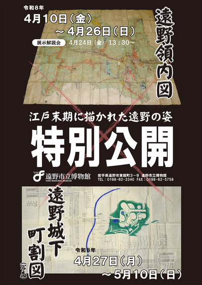 江戸時代末期に描かれた「遠野領内図」と「遠野城下町割図」を特別公開します。