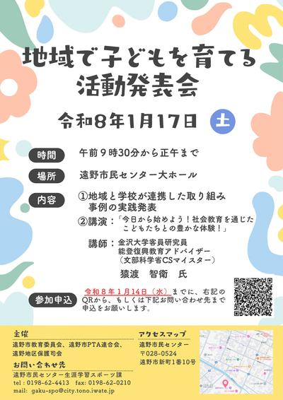 令和7年度地域で子どもを育てる活動発表会を開催します!