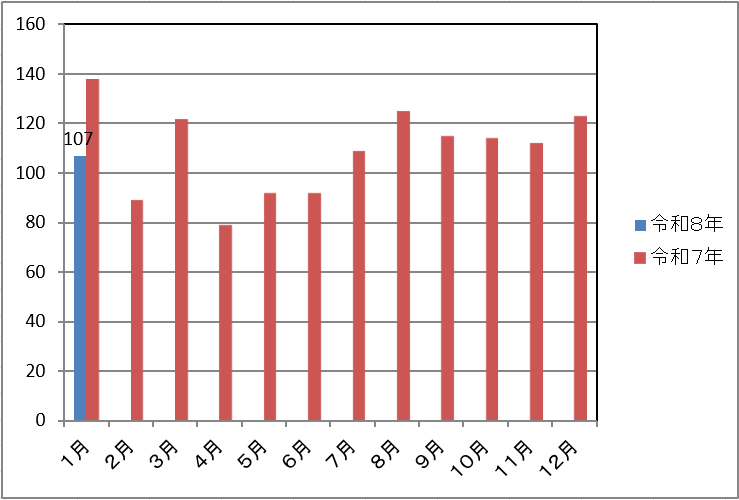 ☆令和8年1月~12月の救急件数【 令和7年との比較 】